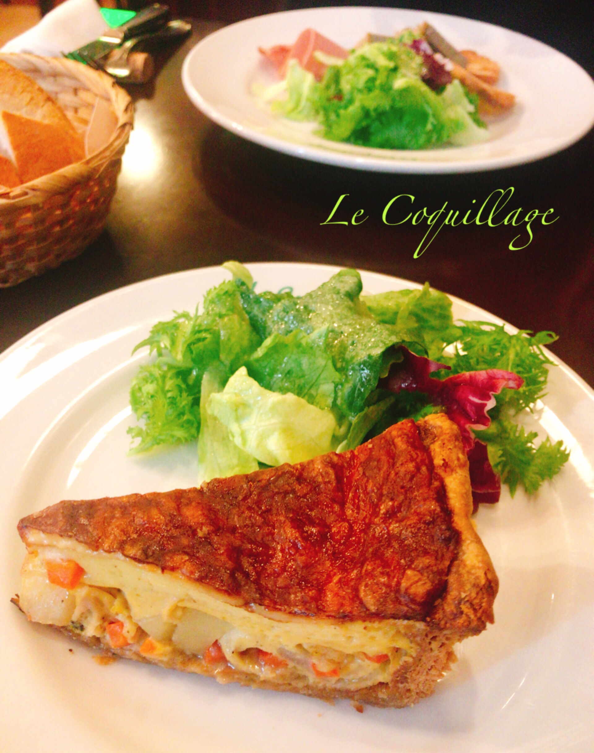 前菜もメインもデザートも数種類の中から好きなものを選択できます。このお店はキッシュが評判のようだったので、前菜は本日のキッシュ「クラムチャウダーのキッシュ」にしてみました。Mお姉様は白レバーのムースとハムの盛り合わせ。アサリのダシをたっぷり含んだお野菜が沢山入っていて美味しかったです。