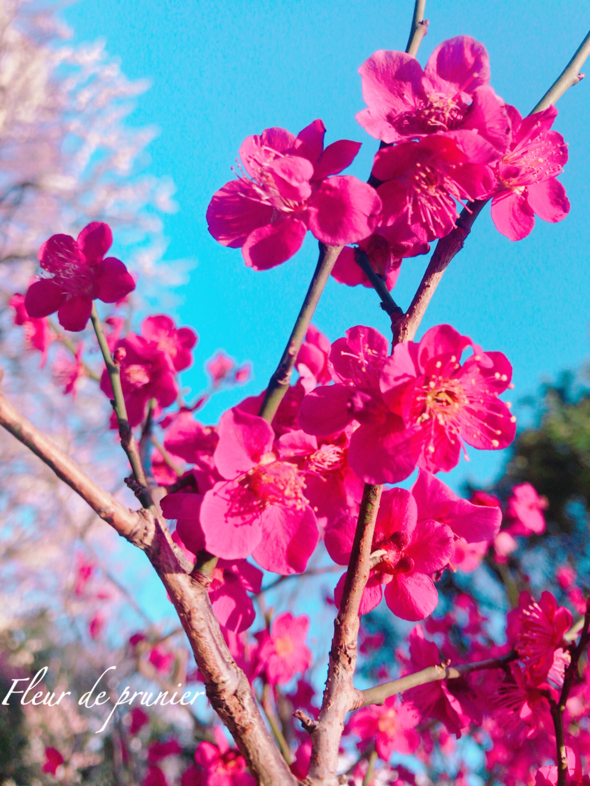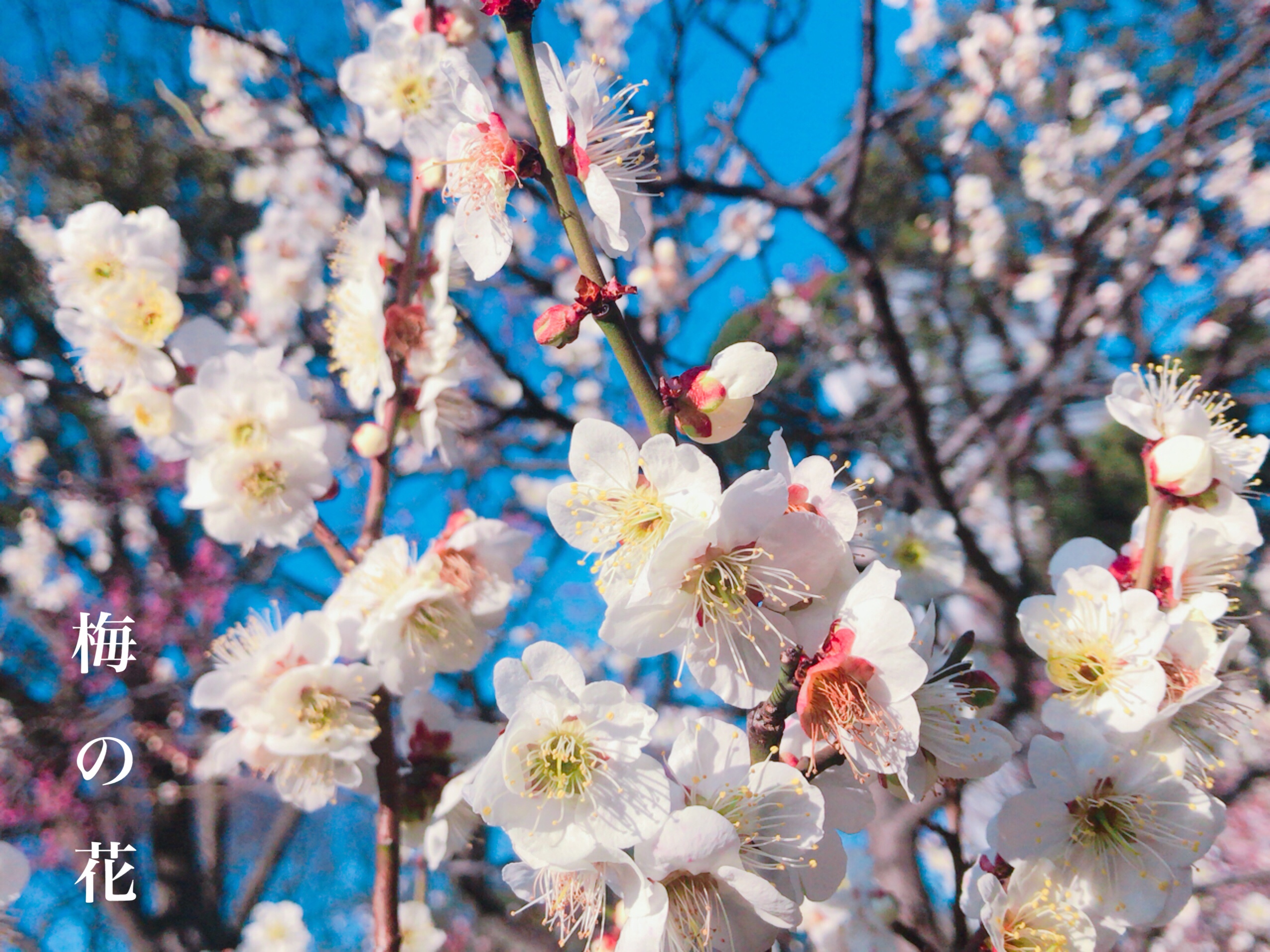 青空に可憐な梅の花が映えて綺麗
