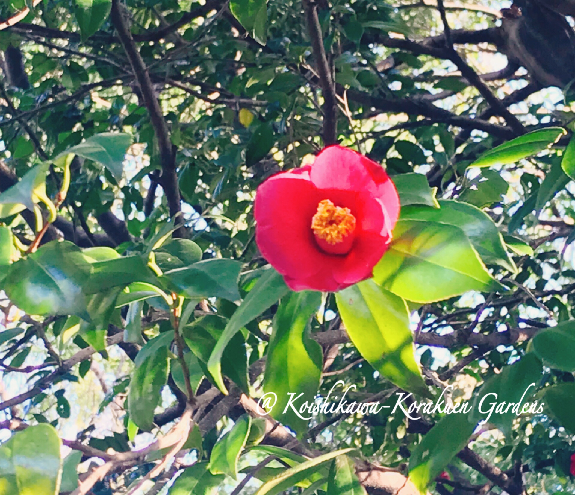 ほとんど花が落ちていたけれど一輪だけ咲いていた椿。